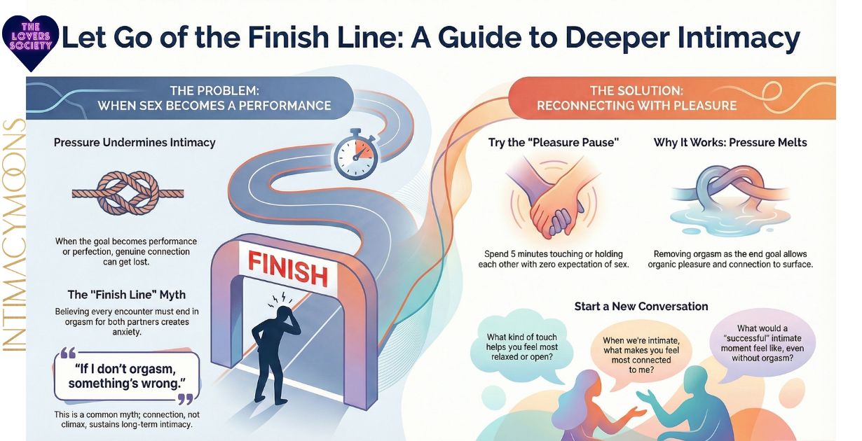Let go of the finish line. Focus on what feels good. Intimacy is less about what you do and more about how you feel with each other.